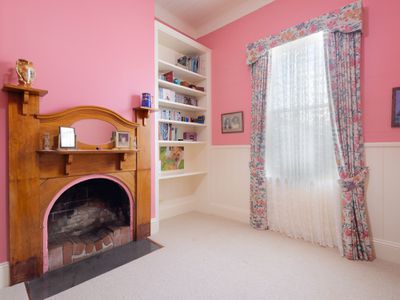 Upstairs, two charming bedrooms feature dormer windows, built-in robes, and inviting reading nooks. A family bathroom services this wing, while a second staircase leads to a spacious, light-filled retreat, that can be utilised as a library, studio, study, or fourth bedroom.