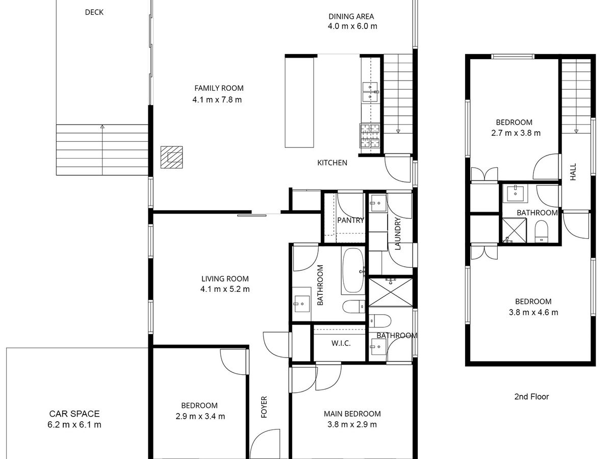 The ground floor has been intelligently designed for everyday family living, featuring a master bedroom with ensuite and built-in robes, a second bedroom, a central family bathroom, and a separate family room perfect as a children’s retreat or second living space.
