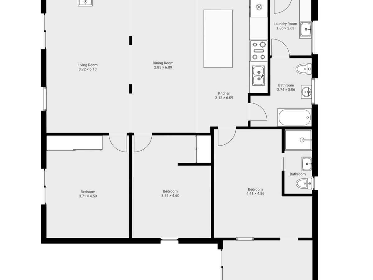 The centre of the home is an expansive open-plan kitchen, dining and living zone, suited to both relaxed daily living and entertaining. The kitchen is well appointed with stone benchtops, a central island bench, Belling standalone oven, dishwasher and a generous walk-in pantry. Practical inclusions such as a cloak room and laundry enhance everyday functionality, while sliding doors extend the living space to a private paved courtyard ideal for entertaining.